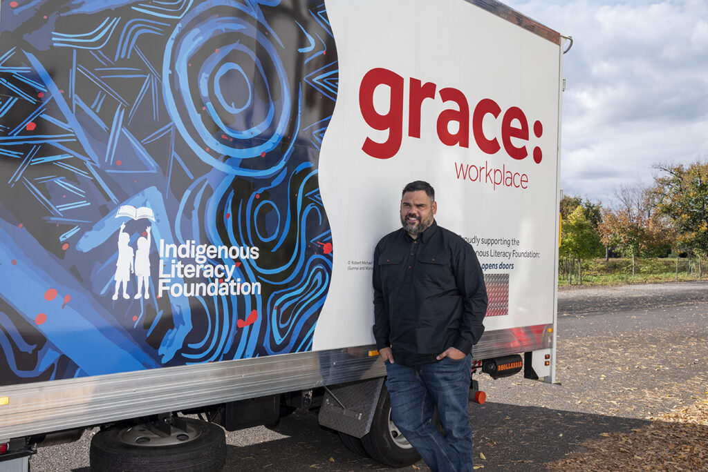 This partnership is not just another corporate initiative; it is our commitment to NAIDOC Week and beyond. By commissioning Robert Young to reproduce his original artwork onto a new Grace Workplace truck, Grace is raising awareness for the ILF’s vital work to supply and create culturally relevant books to support remote Indigenous Communities, to create and publish their stories in languages of their choice.