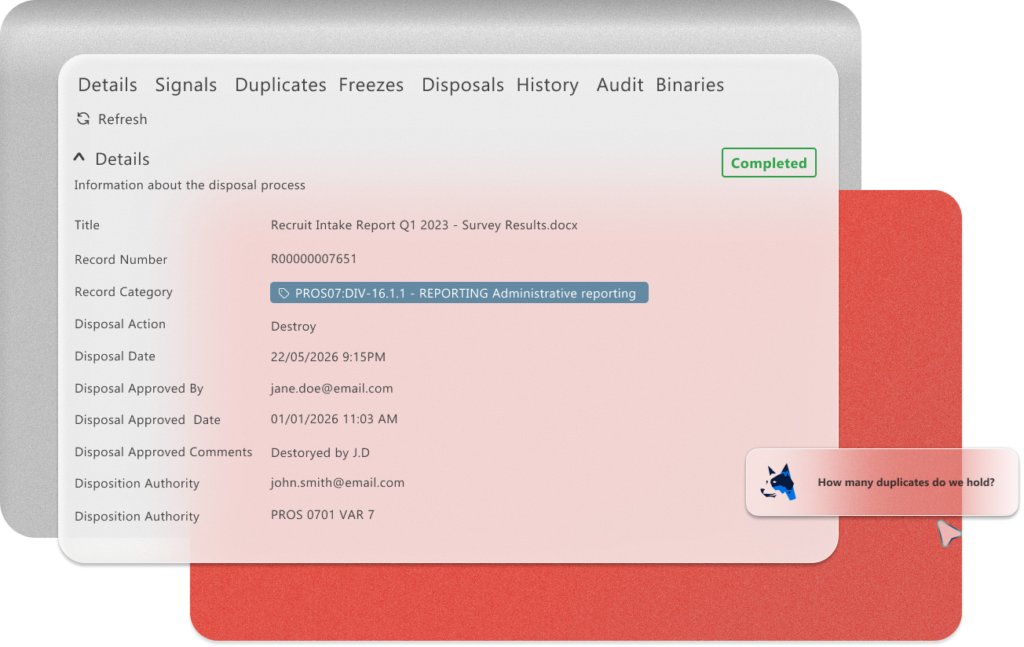 Your data doesn’t sit neatly in one place. It’s spread across emails, file shares, document management systems, and cloud platforms — and much of it is unstructured, unlabeled, and poorly tracked. Our solution automatically scans and maps your entire data environment, no matter where the data lives. It uses machine learning to classify records at scale, helping you understand what information you hold, where it resides, and what value or risk it carries.